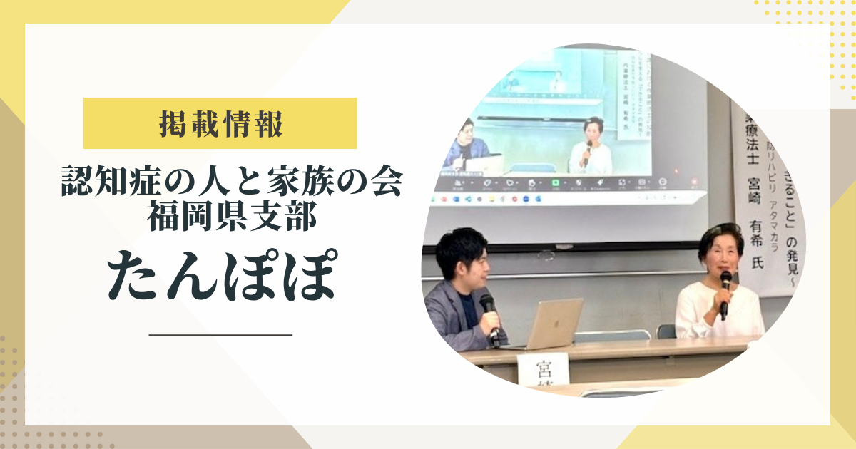 このたび、公益社団法人 認知症の人と家族の会 福岡県支部が発行する広報誌「たんぽぽ」に、講演内容のご紹介いただきました。